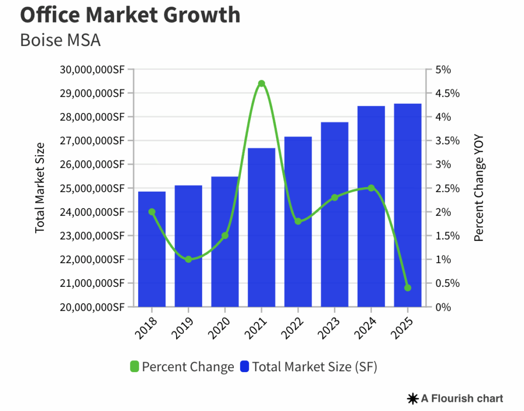 As the U.S. office landscape continues shrinking in 2025, Boiseâs market trends indicate a disciplined marketplace delivering positive, stable consistencies.
